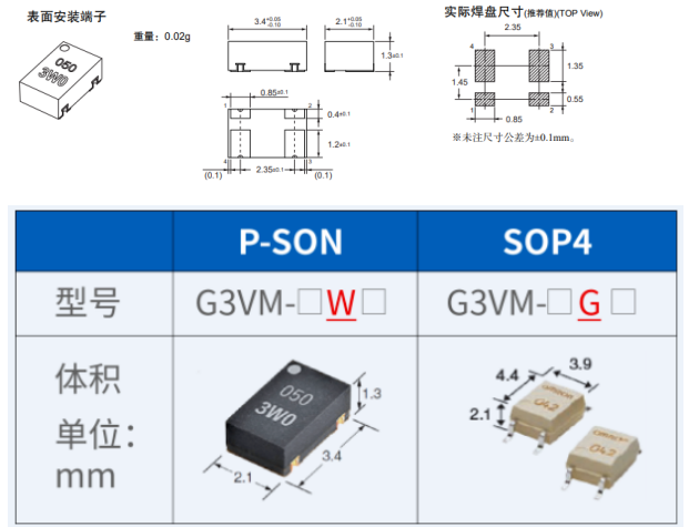 僅有3.4*2.1*1.3mm,僅為SOP4引腳封裝面積的1/4,可以實現(xiàn)更高密度的貼片安裝,實現(xiàn)更小型化,更多通道,更多功能;