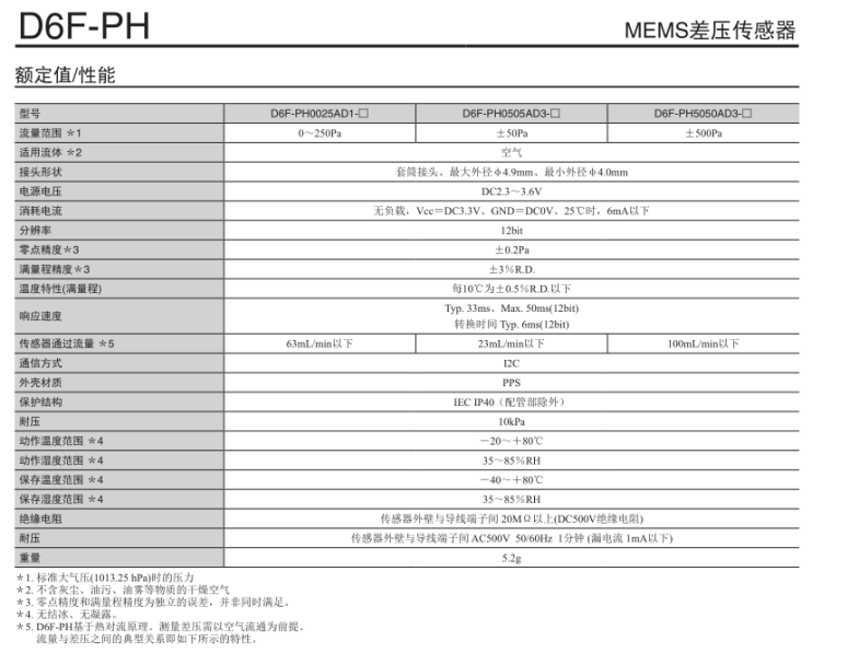 D6F-PH傳感器有以下特點: