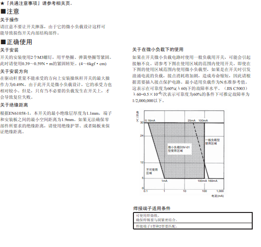 | 注:1.次數(shù)值為標(biāo)準(zhǔn)規(guī)格的節(jié)點間隔1mm(F ?Gap)的電流常熟,節(jié)點間隔為0.5mm(G Gap)的場合,定格多少有所不同,請充分注意。 |
