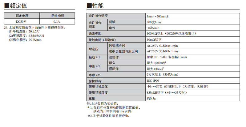 采用按鈕動作式的歐姆龍超小型開關(guān) 歐姆龍超小型(高6×寬8×深4.2mm)、輕量(約0.3g)、3mm的長行程。 由于是滑動方式,所以短路、非短路的切換時間可根據(jù)使用用途進行選擇。