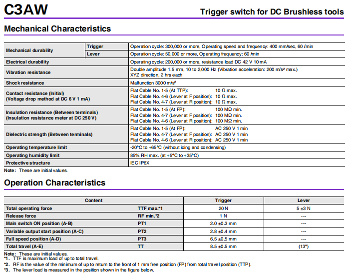 通過在蓋殼之間安裝密封罩和超聲波焊接連接來實現(xiàn)防塵 (IEC IP6X) 增強接觸抗沖擊性 觸發(fā)的持久性是 300,000 次或更多次操作 通過將扁平電纜 AWG #28 直接連接到開關來節(jié)省線路