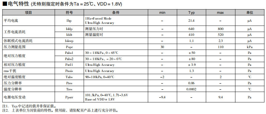 高精度·低消耗電流的小型MEMS絕對壓力傳感器 高精度地測量氣壓 內(nèi)置低干擾的24bit ADC 基于I2C/SPI 接口的數(shù)字控制/輸出 在自動睡眠模式下實現(xiàn)低消耗電流 單獨的補償系數(shù)保存在OTP*中 (* One Time Programmable - ROM)